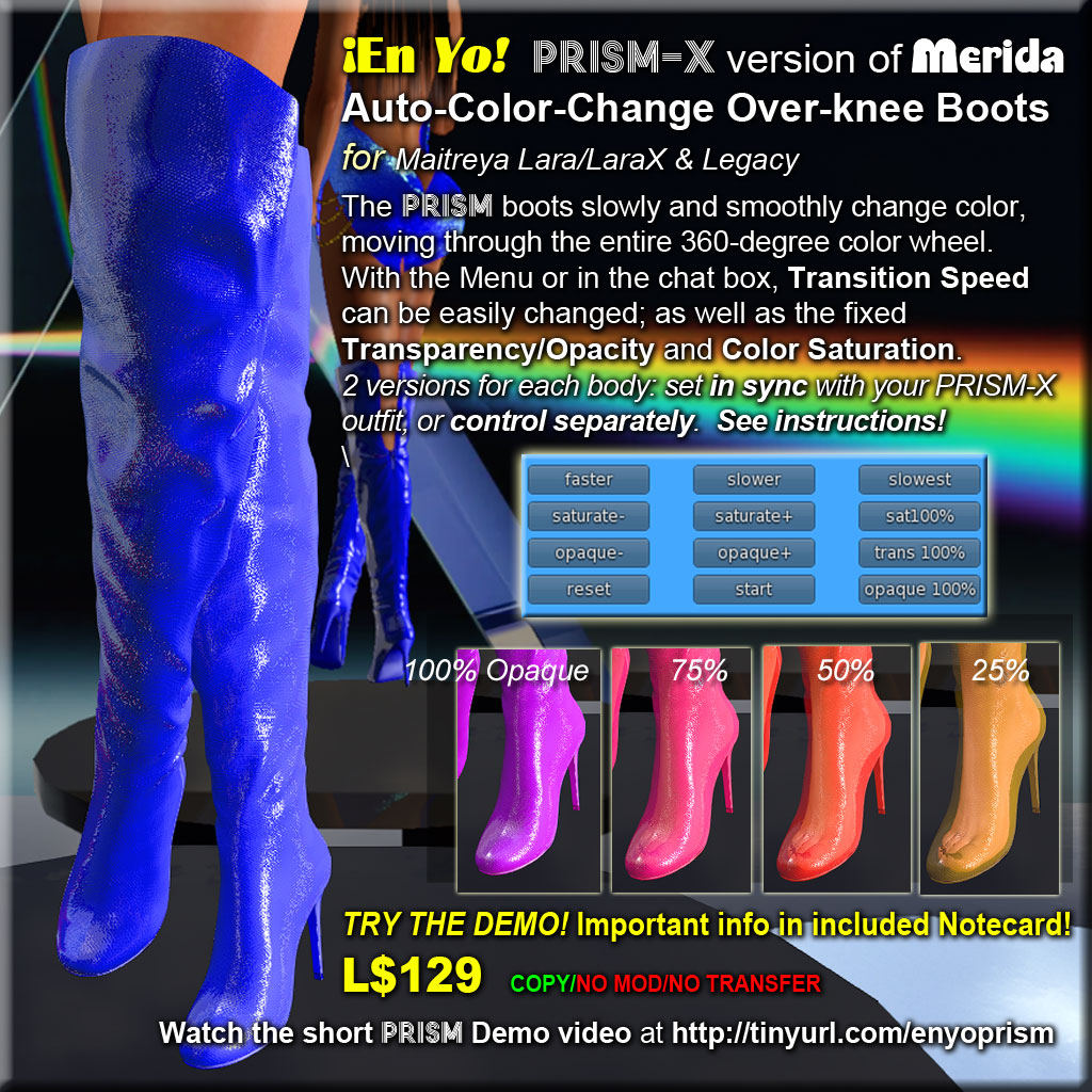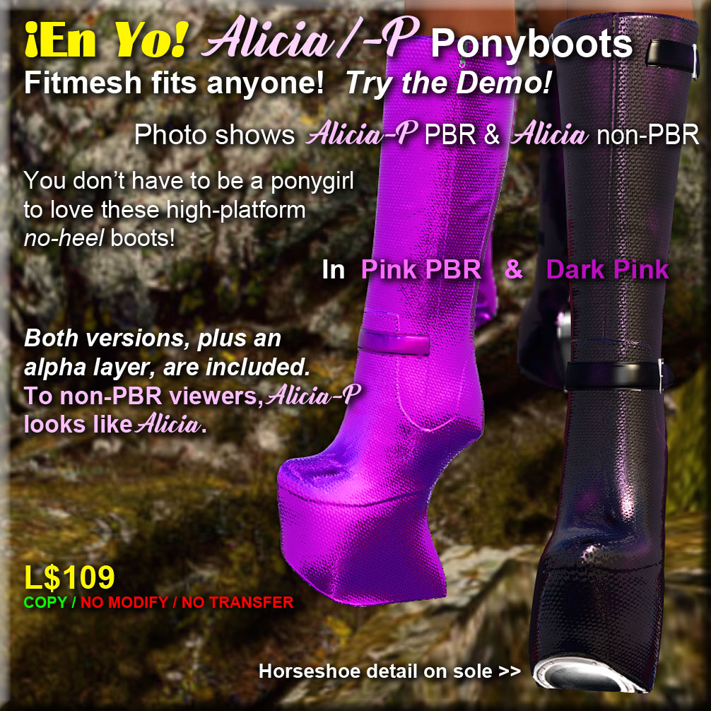 The most popular SL viewers are PBR capable, but many SL Residents have stayed with their old ones until LL improves viewer performance on older computers. And sometimes legacy texture clothes (the technical term is Blinn-Phong) look better in a location than PBR; for example, Midnight lighting can make your clothes turn almost black! So anything I make in PBR will also have a good-looking “fallback texture” for those non-PBR viewers, and almost any brand-new item will be sold as a Combo Pack with both PBR and Blinn-Phong versions. I’ll do this for as long as it makes sense (maybe forever).
